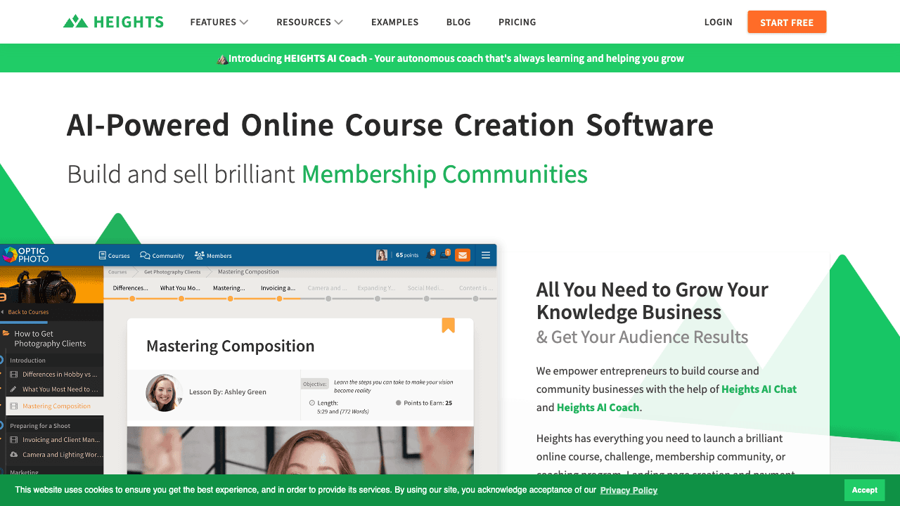 Heights Platform is an AI-powered online course creation and community software that allows entrepreneurs to build and sell online courses, challenges, membership communities, and coaching programs. It offers powerful insights and tools to engage learners, measure their progress, and ensure they can reach their desired outcomes. Heights AI Coach provides autonomous coaching to help creators grow. The platform is used by creators from over 100 countries and has been successful in helping marketers, cooking enthusiasts, relationship coaches, fitness instructors, and more monetize their knowledge. Heights Platform is the ultimate solution for building online courses and selling digital products.
